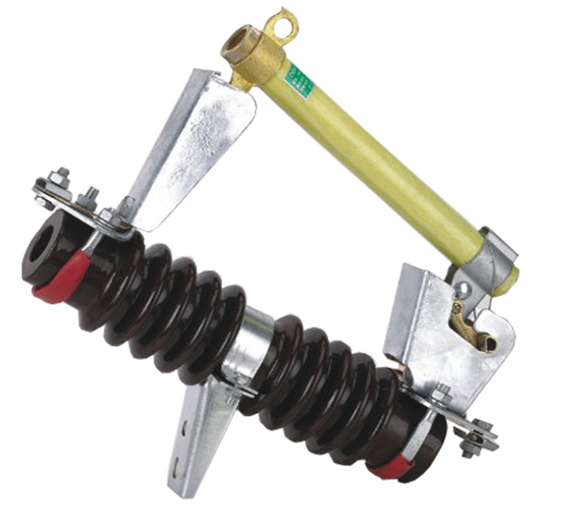 RW7跌落式熔斷器在正常運行時,熔絲管借助熔絲張緊后形成閉合位置。當系統(tǒng)發(fā)生故障時,故障電流時熔絲迅速熔斷,并形成電弧,消弧管受電弧灼熱,分解出大量的氣體,使館內(nèi)形成很高壓力,并沿管道形成縱吹,電弧被迅速拉長而熄滅。熔絲熔斷后,下部動觸頭失去張力二下翻,鎖緊機械,釋放熔絲管,熔絲管跌落,形成明顯的開斷位置。當需要拉負荷時,用絕緣桿拉開動觸頭,此時主動、靜動觸頭仍然接觸,繼續(xù)用絕緣桿拉動觸頭,輔助觸頭也分離,在輔助觸頭之間產(chǎn)生電弧,電弧在滅罩狹縫中被拉長,同時滅弧罩產(chǎn)生氣體,在電流過零時,將電弧熄滅。