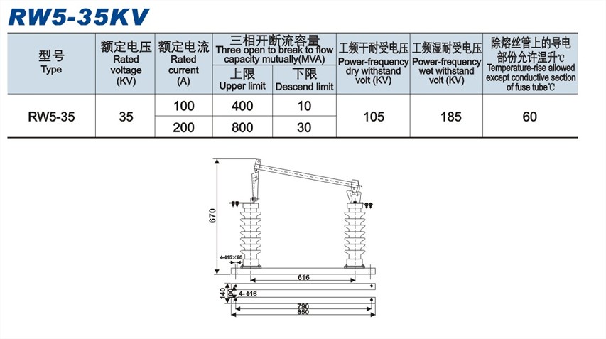 戶外高壓跌落式熔斷器適用于35kv及以下電壓頻率50Hz電力系統(tǒng)中,作輸電線路、電力變壓器過載和短路保護(hù),分合額定負(fù)荷電流只用,機(jī)械壽命≥2000次。