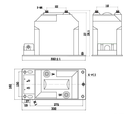 本型電壓互感器為環(huán)氧樹脂真空澆注全封閉單相戶內結構, 主要適用于額定頻率為50Hz或60Hz , 額定電壓10kV及以下電力系統(tǒng)中作電能計量、 電壓測量用。