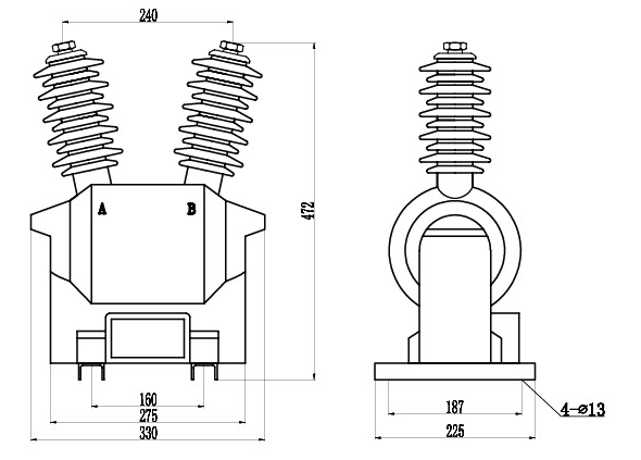 本型電壓互感器為環(huán)氧樹脂真空澆注全封閉單相戶外結(jié)構(gòu), 主要適用于額定頻率為50Hz或60Hz , 額定電壓10kV及以下電力系統(tǒng)中作電能計(jì)量、 電壓測(cè)量用。