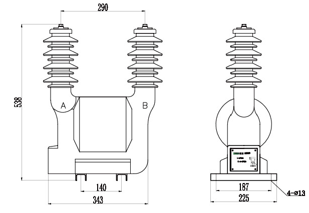 本型電壓互感器為環(huán)氧樹脂真空澆注全封閉單相戶外結(jié)構(gòu), 主要適用子額定頻率為50Hz或60Hz, 額定電壓10kV及以下電力系統(tǒng)中作電能計(jì)量、 電壓測量用。