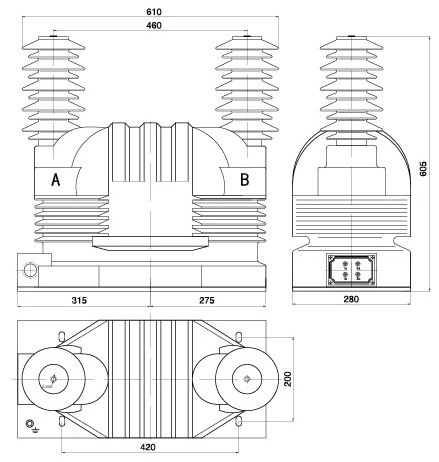 本型電壓互感器為環(huán)氧樹指真空澆注全封閉單相戶內(nèi)結(jié)構(gòu), 主要適用于額定頻率為50Hz或60Hz, 額定電壓35kV及以下電力系統(tǒng)中作電能計(jì)暈、 電壓測(cè)量用。