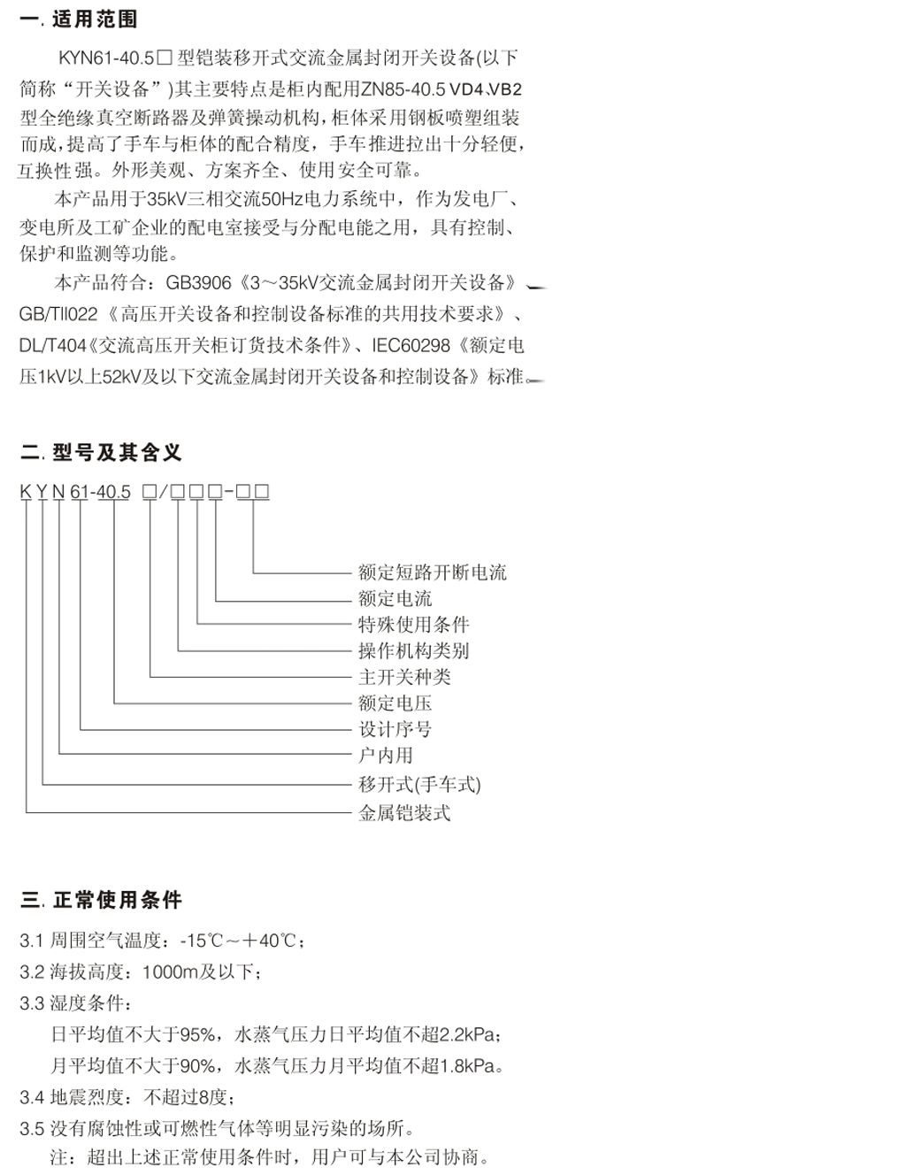 KYN61-40.5鎧裝移開式金屬封閉開關(guān)設(shè)備
