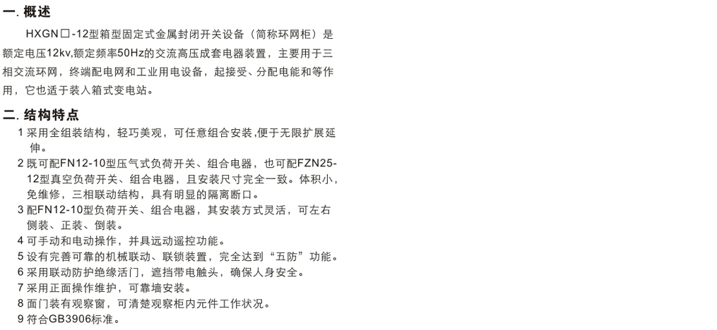 HXGN口-12箱型固定式金屬封閉開關(guān)設(shè)備